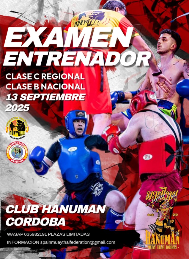 El 22 de Julio examenes grados khan en el club Hanuman de Cordoba información 635982191 spainmuaythaifederation@gmail.com
