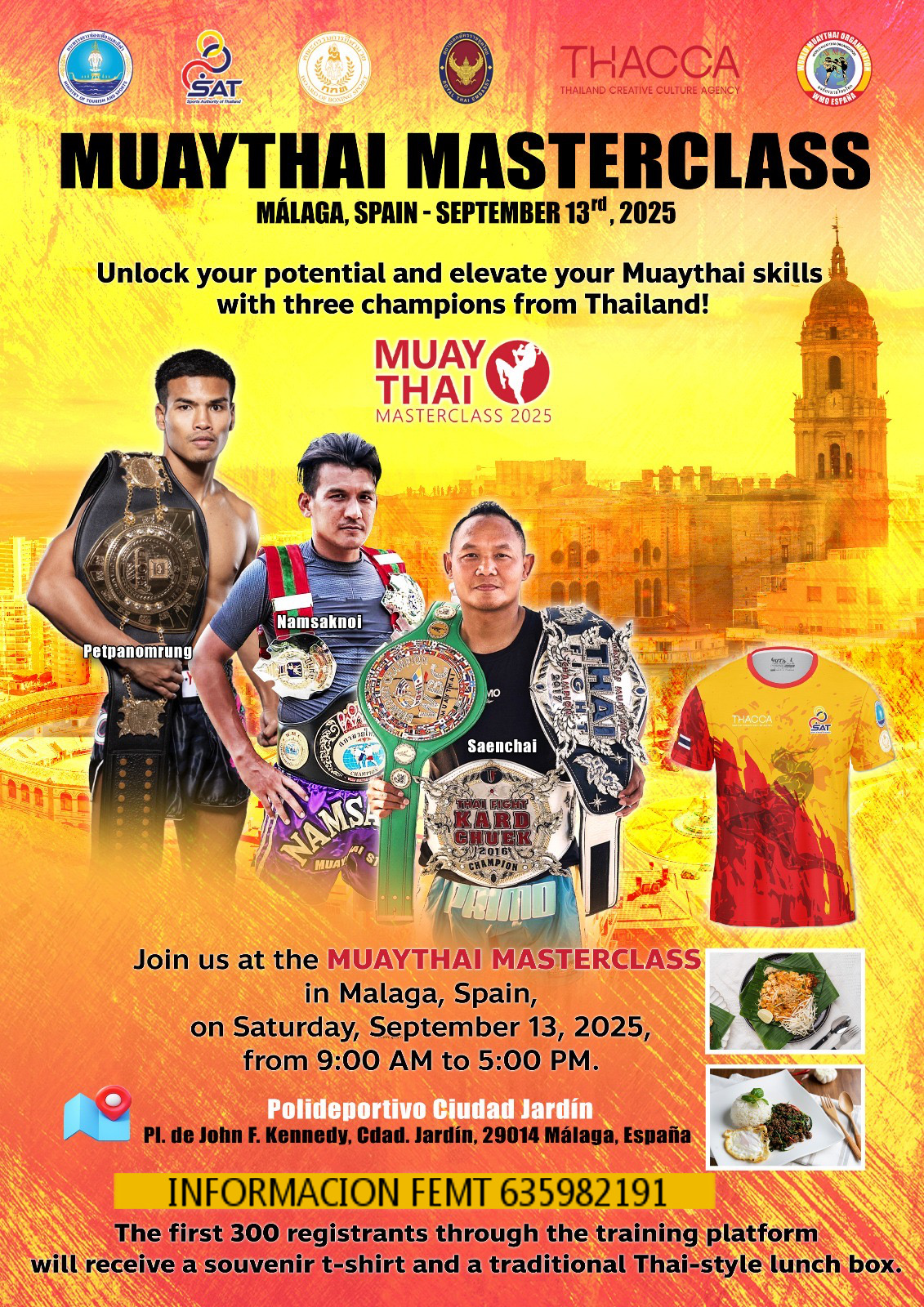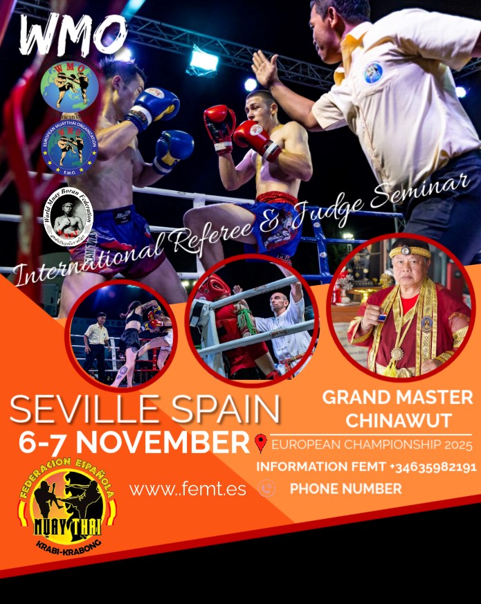 13 de Septiembre la FEMT Y WMO con la colaboracion del gobierno Tailandes organiza en la ciudad de Malaga este espectacular seminario master class con 3 de los mejores competidores Tailandeses y autenticas leyendas de este deporte. Informacion 635982191